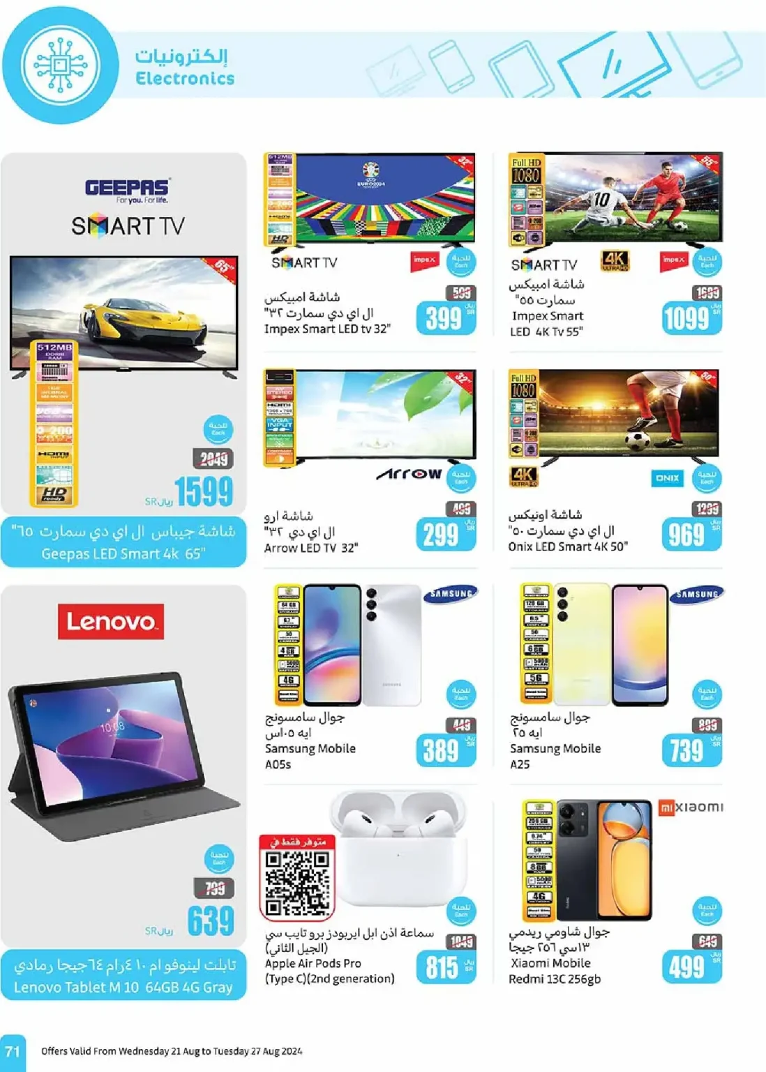 - شاشة أرو إل إي دي 32 بوصة: 299 ريال سعودي