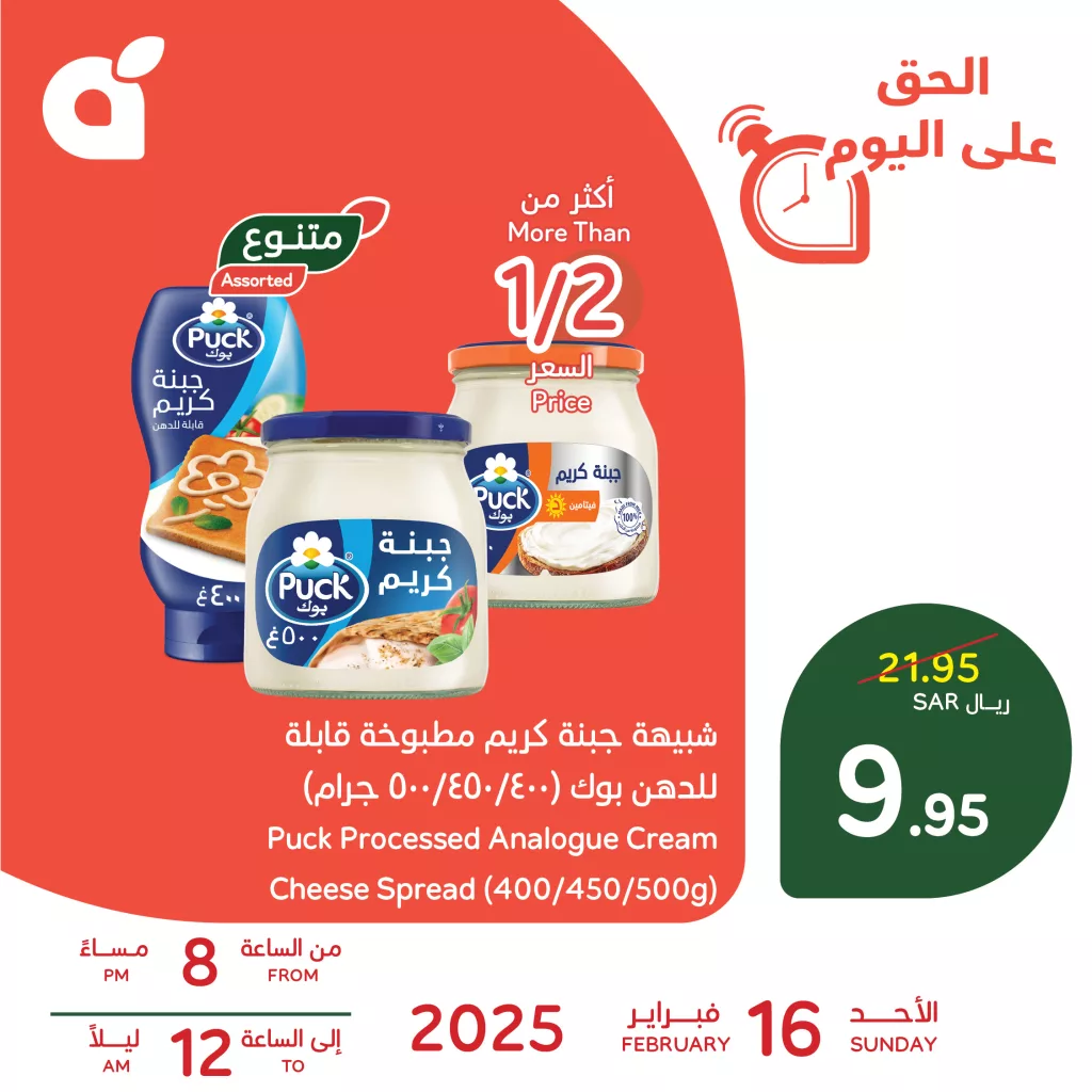 مع عروض رمضان اليومية من بنده وهايبر بنده، لا تفوتوا الفرصة للحصول على شبيهة جبن كريم مطبوخة قابلة للدهن من بوك بسعر أكثر من نصف السعر! 😍 الآن فقط 9.95 ريال بدلاً من 21.95 ريال، وفروا على مشترياتكم الرمضانية واستمتعوا بأفضل المنتجات بأسعار مذهلة! 🎉