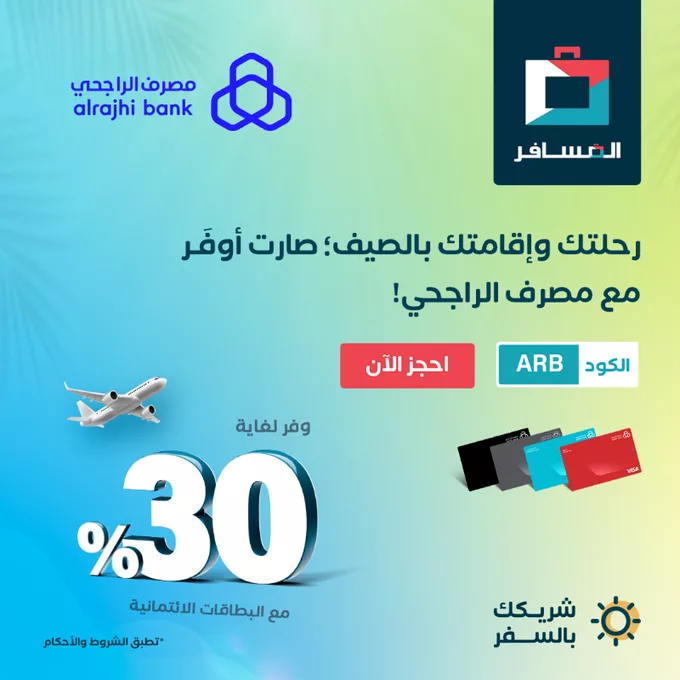 المسافر بالتعاون مع مصرف الراجحي يقدمان لك عرض صيفي مميز يشمل: