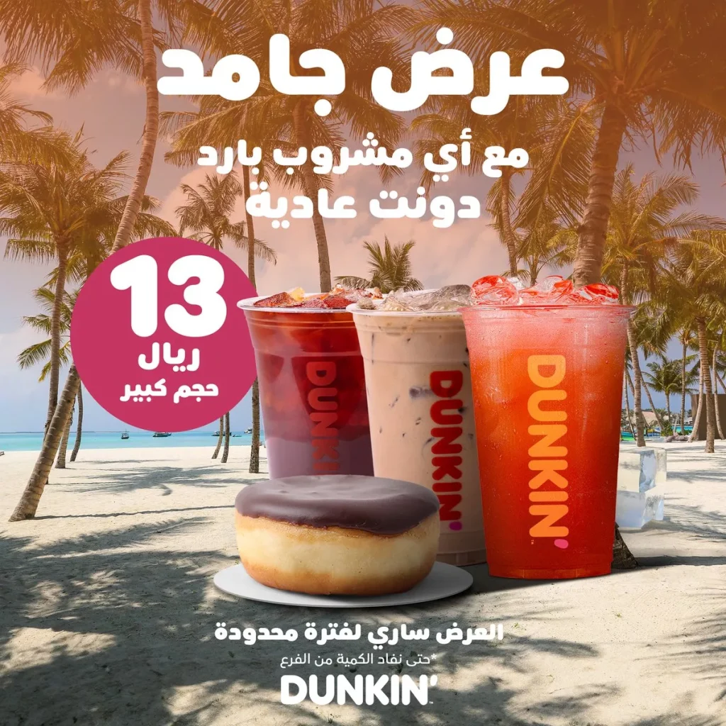 عرض مذهل من دانكن: مشروب بارد ودونت عادية بـ 13 ريال فقط!
