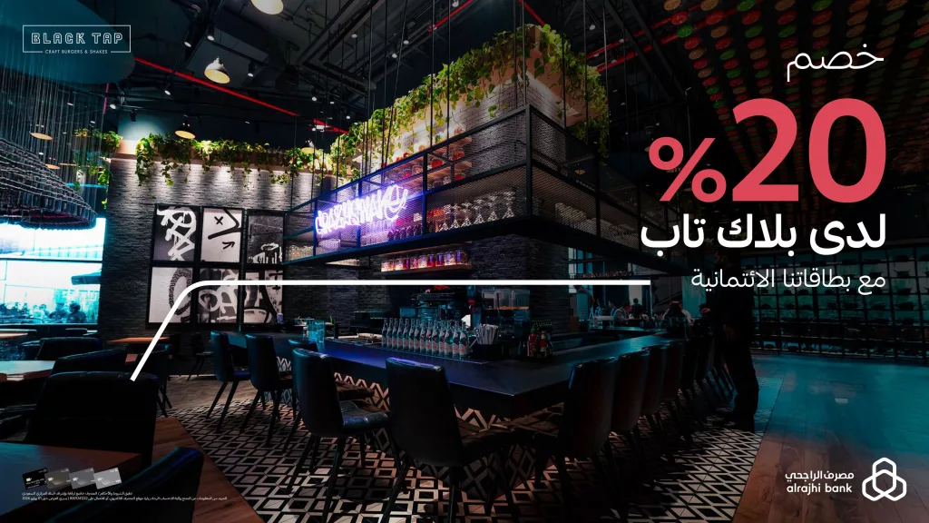 خصم 20% لدى مطعم “بلاك تاب” مع بطاقات مصرف الراجحي الائتمانية وفرو اكثر و استمتعوا بأفضل الاجواء