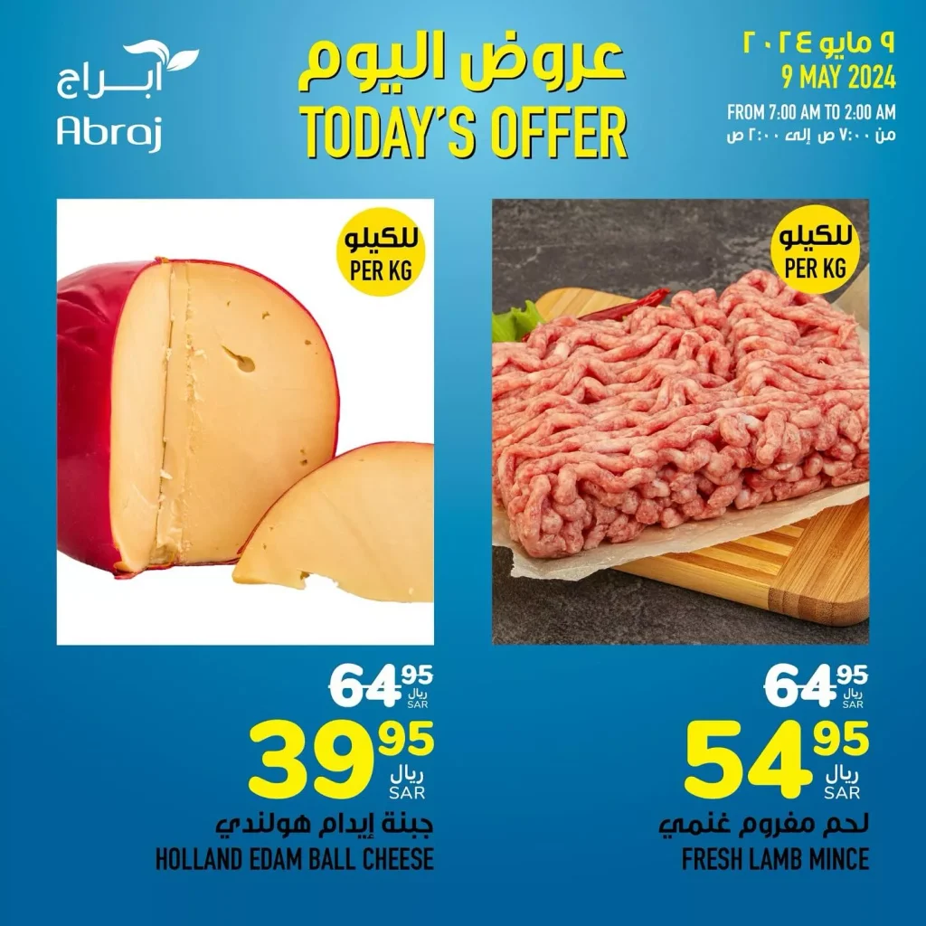 عروض ابراج هايبر ماركت خلال الويكند الخميس 9 مايو 2024 توفر للمتسوقين فرصة رائعة للحصول على خصومات كبيرة على مجموعة واسعة من المنتجات. تمتعوا بالأسعار المخفضة على الخضروات والفواكه، اللحوم، المأكولات البحرية، ومنتجات الألبان التي تقدم طازجة وبجودة عالية.