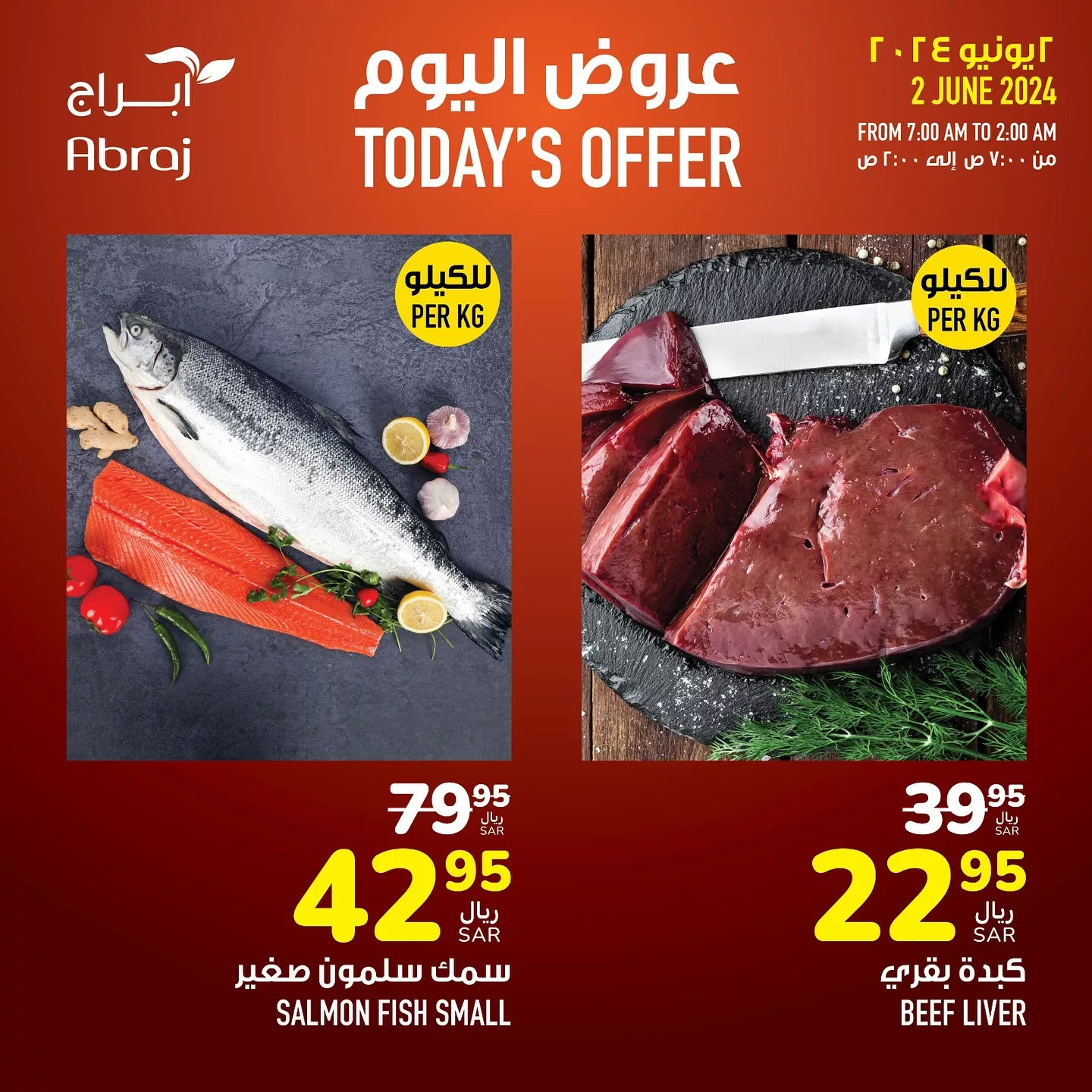عروض أبراج هايبر ماركت تستمر في تقديم مفاجآت رائعة تشمل مجموعة من الخيارات الغذائية الطازجة مثل الدجاج المشوي مع الأرز بخاري، المكسرات المشكلة، وسمك السلمون الصغير. بالإضافة إلى المنتجات الطازجة، هناك أيضاً عروض مميزة على اللحوم مثل صدر الديك الرومي المدخن والكبدة البقري. كما تشمل علي منتجات غذائية متنوعة