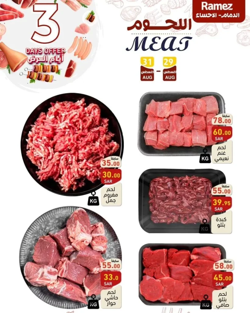 - لحم مفروم عجل: 29.95 ريال سعودي للكيلو