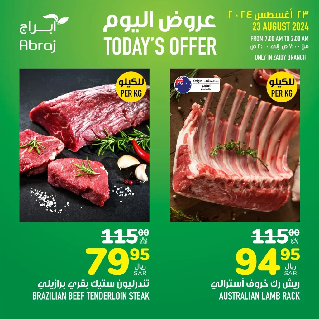 - ستيك بقري برازيلي: 79.95 ريال سعودي للكيلوغرام