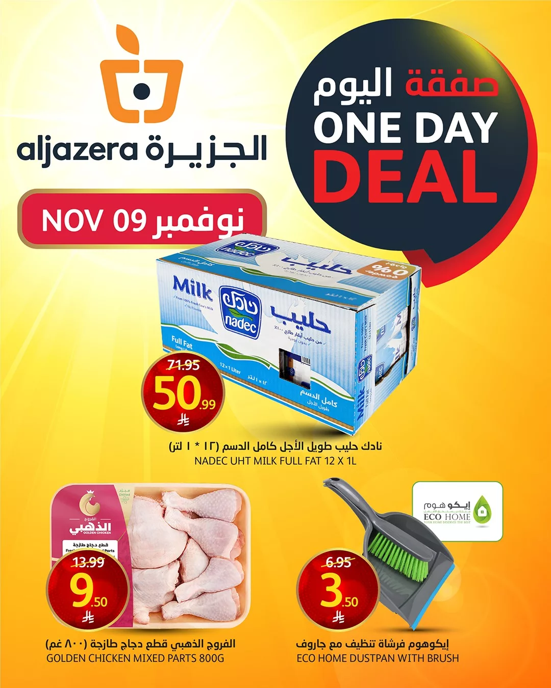 نقدم لكم اليوم عروض اسواق الجزيرة الاحد 9 نوفمبر 2025 و تشمل افضل المنتجات الغذائية من نادك حليب طويل الاجل و ايكوهوم فرشاة تنظيف مع جاروف و غيرها من المنتجات في عرض حصري متاح اليوم فقط و باسعار رائعة فقط تابعونا ليصل اليكم كل جديد عن عروض السعودية .