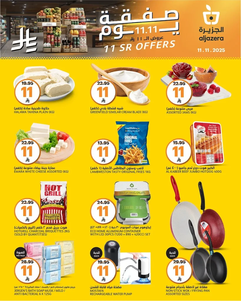 مع زلنا فى تغطية حصرية لكافة عروض يوم العزاب 11.11 والتى تقدم فيه العديد من المتاجر عروض خاصة تحتوى على العديد من الخصومات المميزة وتقدم اسواق الجزيرة عرضا خاصا لمدة يوم واحد فقط يحتوى على العديد من المنتجات الغذائية المتنوعة