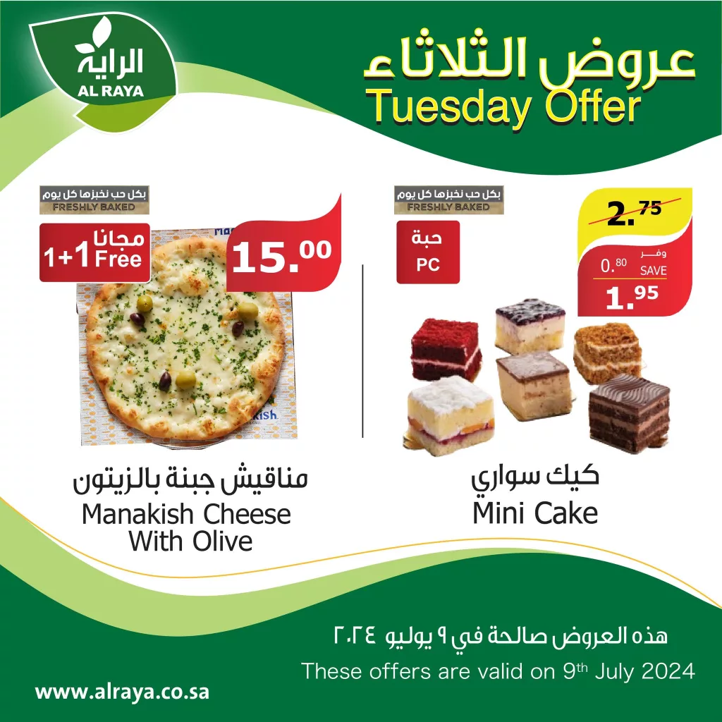 تقدم أسواق الراية الطازج الثلاثاء 9 يوليو 2024 مجموعة مميزة من العروض والتخفيضات على تشكيلة واسعة من المنتجات الطازجة لتلبية كافة احتياجات العائلة. تشمل العروض خصومات كبيرة على الخضروات والفواكه الطازجة التي يتم جلبها يوميًا من أفضل المزارع لضمان الطزاجة والجودة.