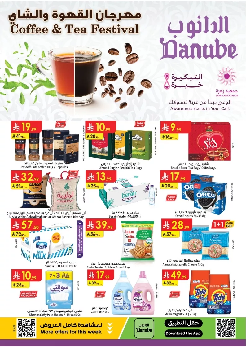 عروض الدانوب الدمام الأسبوعية الخميس 17 ربيع الآخر 1447هـ تقدم خصومات على منتجات الألبان والجبن والعصائر بجانب المخبوزات والمعجنات الشرقية والعسل الطبيعي كما تشمل العروض عروضًا على القهوة والمكسرات وأطقم المائدة الفاخرة مع تخفيضات على أجهزة التحضير وأدوات الضيافة المنزلية