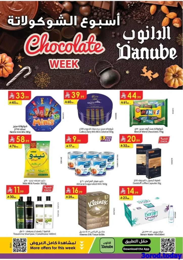 عروض الدانوب الرياض الأسبوعية الأربعاء 22-10-2025 تشمل مجموعة كبيرة من المنتجات الغذائية من المخبوزات والمعجنات الشرقية والفواكه والخضروات الطازجة والعسل الطبيعي والقهوة والشاي والبهارات المتنوعة والمعلبات كما تحتوي على خصومات على أجهزة التحضير وأجهزة القهوة وأفران البيتزا وأدوات المطبخ باقل الاسعار