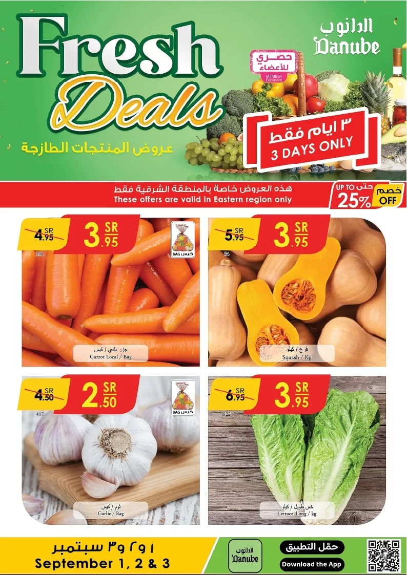 عروض الدانوب المنطقة الشرقية تقدم مجموعة مميزة من المنتجات الطازجة، حيث تشمل عروض الخضروات والفواكه الطازجة التي تلبي كافة احتياجات الأسرة بأسعار مغرية وتخفيضات تصل حتى 25%. تتضمن العروض أنواعًا متعددة من الخضروات