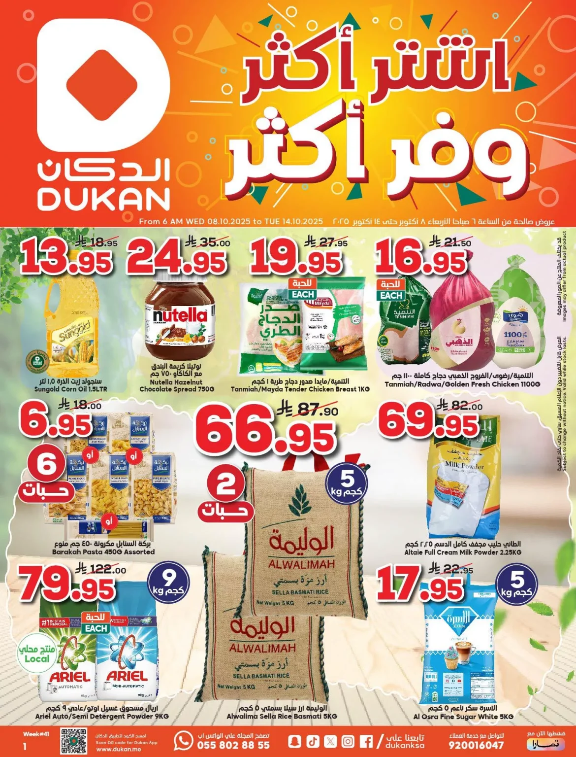 عروض الدكان جدة الأسبوعية الأربعاء 8-10-2025 تقدم تخفيضات على الفواكه الطازجة والخضروات والعصائر بجانب المخبوزات والحلويات ومنتجات الألبان كما تشمل العروض القهوة والمكسرات والعسل الطبيعي مع عروض على أدوات المائدة وأجهزة القلايات الهوائية وأجهزة التحضير الصغيرة باسعار لا تقبل المنافسة