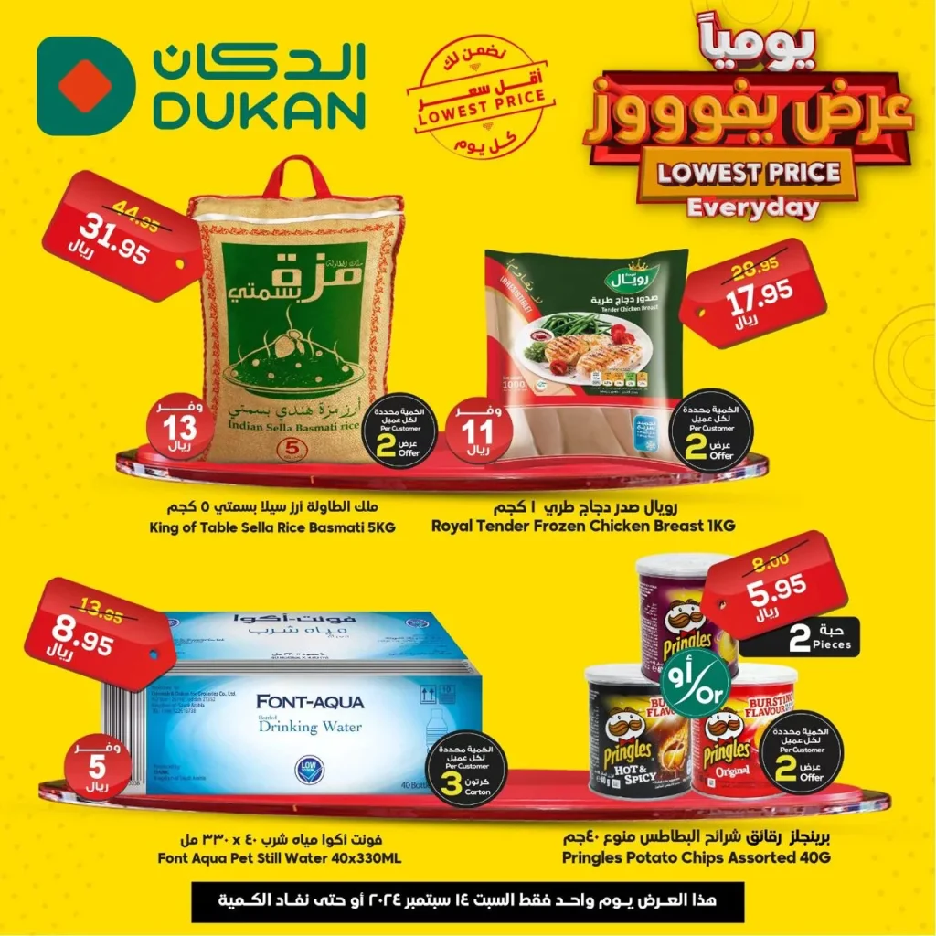 عروض الدكان جدة السبت 14 سبتمبر 2024 تقدم مجموعة رائعة من التخفيضات على مختلف المنتجات الغذائية والاستهلاكية. هذه العروض تشمل العديد من الأصناف المميزة مثل الأجبان الطازجة واللحوم والأسماك، التي تم اختيارها بعناية لتلبي احتياجات جميع أفراد الأسرة.