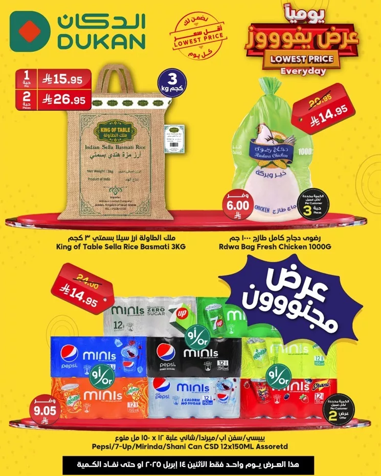 تعود إلينا عروض الدكان يوم الاثنين 14 إبريل 2025 بمجموعة من التخفيضات اليومية التي تهم كل أسرة سعودية باحثة عن الجودة والسعر المناسب وتضم العروض تشكيلة متنوعة من السلع الأساسية التي لا غنى عنها في كل منزل مثل الأرز والدجاج والمشروبات في إطار حملة “عرض يفوووز” التي تضمن أقل سعر كل يوم
