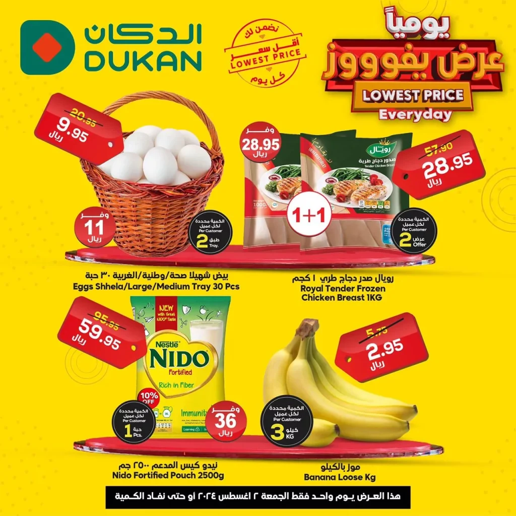 تتميز هذه العروض بالتنوع والشمولية، حيث تتضمن منتجات عالية الجودة من علامات تجارية موثوقة. سواء كنت تفضل التسوق الأسبوعي أو الشهري، ستجد في عروض الدكان كل ما يلزم لتلبية احتياجاتك الغذائية والمنزلية. يحرص الدكان دائماً على تقديم الأفضل لعملائه من خلال توفير خصومات جذابة وعروض مميزة