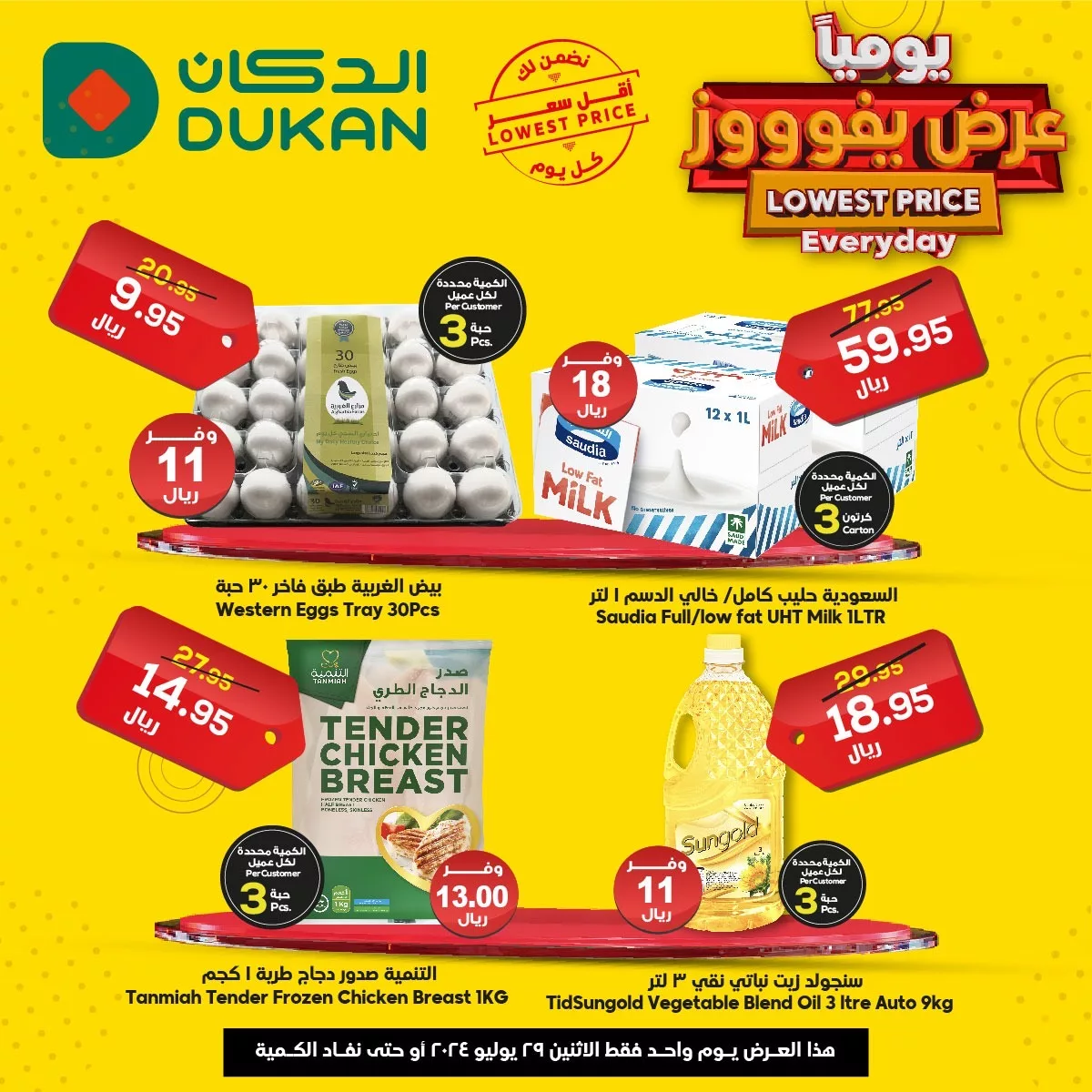 تعتبر عروض الدكان جدة الاثنين 29 يوليو 2024 فرصة رائعة للتوفير على العديد من المنتجات الأساسية. تتضمن هذه العروض خصومات مذهلة على منتجات الألبان والبيض والزيوت والدجاج المجمد، مما يجعلها مثالية للعائلات التي ترغب في شراء احتياجاتها بأسعار منخفضة.