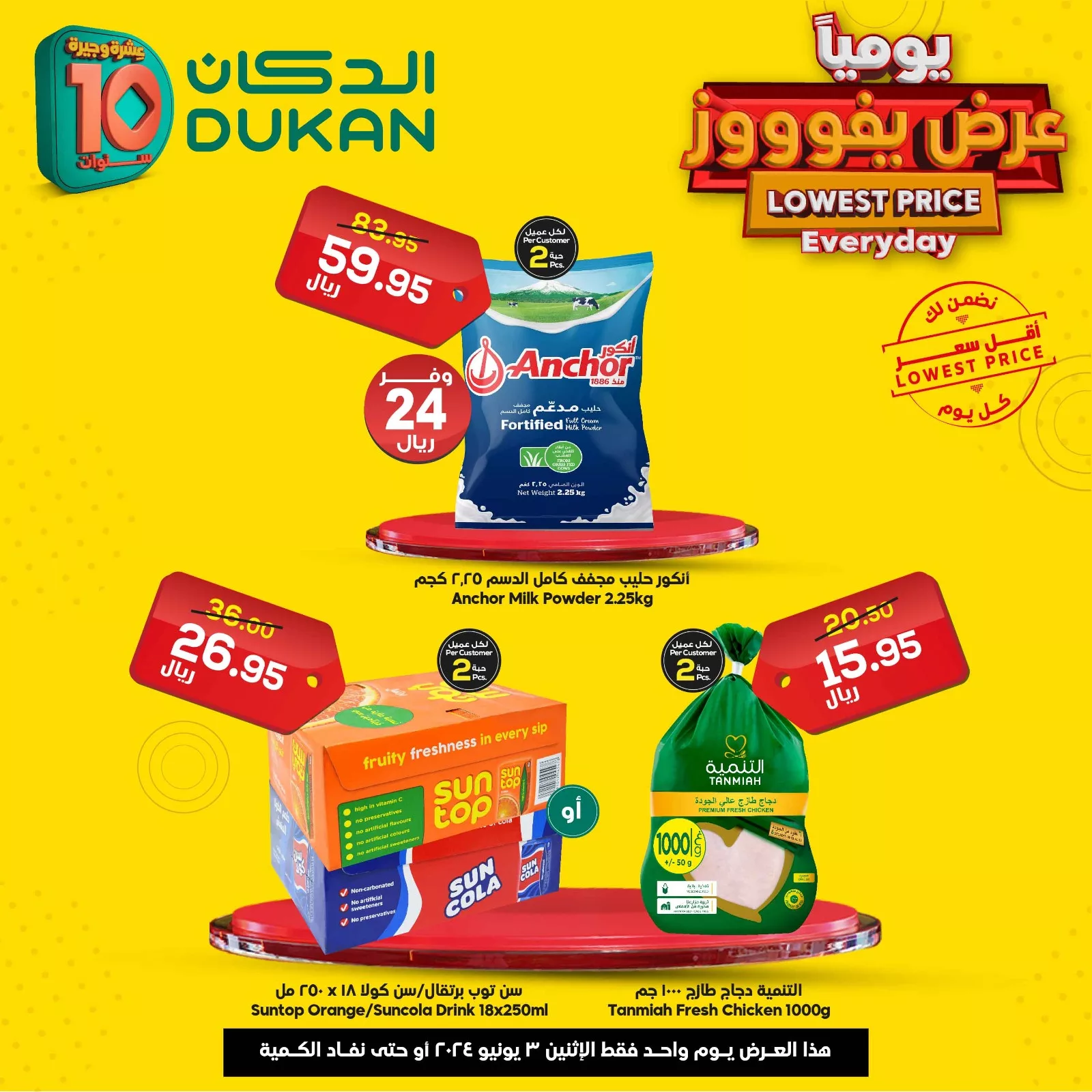 عروض الدكان جدة اليومية الاثنين 3-6-2024 تقدم لك أفضل التخفيضات على مجموعة واسعة من المنتجات الأساسية التي تحتاجها في حياتك اليومية. نحن نوفر لك عروض مميزة على المواد الغذائية الطازجة، المنتجات المنزلية، ومنتجات العناية الشخصية بأسعار تنافسية. استفد من خصوماتنا اليومية التي تشمل تخفيضات على الفواكه والخضروات