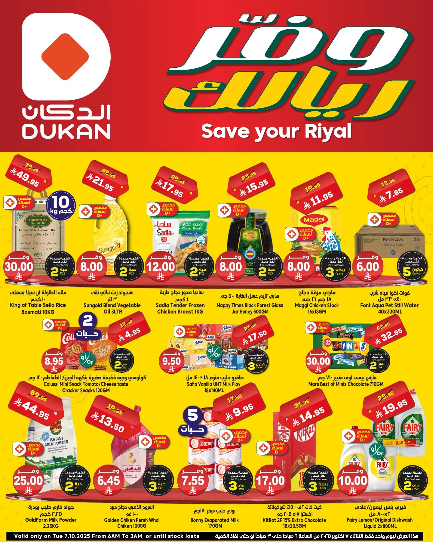 عروض الدكان جدة الثلاثاء 7 أكتوبر 2025 يأتي بأفضل تشكيلة من المنتجات اليومية من المواد الغذائية الأساسية مثل الأرز والزيت والدجاج المجمد بجانب العسل والمعلبات والعصائر يضم كذلك منتجات العناية المنزلية مثل مسحوق الحليب المنظفات السائلة ومعطرات الجو وأدوات غسل الصحون باقل الاسعار .