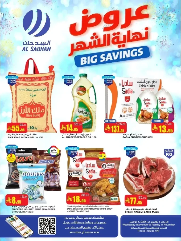 عروض السدحان الأسبوعية الأربعاء 14 جمادى الأولى 1447هـ تحتوي علي الجبن والمكرونات الإيطالية والعسل الطبيعي والفواكه المجففة والخبز البلدي والعصائر والمعلبات المستوردة مع تخفيضات على الأجهزة المنزلية مثل المكانس اللاسلكية وأفران البيتزا المحمولة وأجهزة الطهي السريع وأجهزة الطحن المتعددة