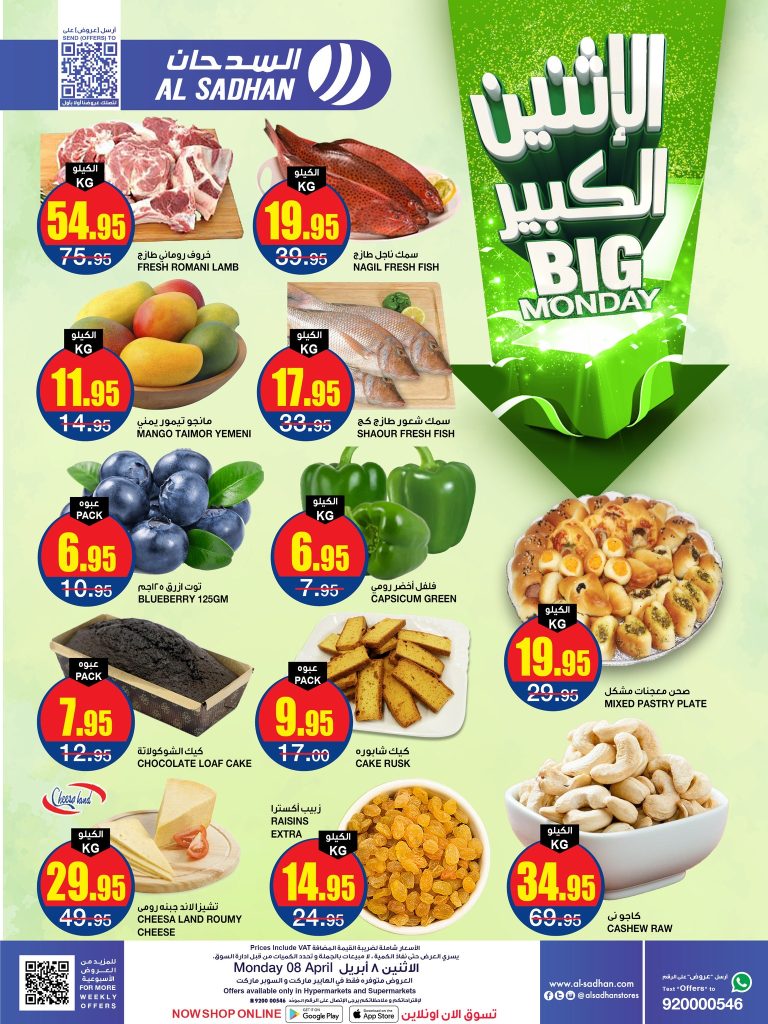تتميز عروض السدحان الطازج بتقديم مجموعة متنوعة من المنتجات الطازجة التي تشمل الخضروات والفواكه الطازجة، اللحوم، الدواجن، والأسماك. هذه العروض مثالية للعملاء الذين يبحثون عن منتجات عالية الجودة لتحضير وجبات صحية وشهية. يُعرف السدحان بتوفيره لأفضل المنتجات الطازجة يوميًا، مما يضمن للعملاء الحصول على الأفضل لأسرهم. تُعد هذه العروض فرصة مثالية لشراء كل ما تحتاجه الأسرة من مكونات طازجة بأسعار معقولة وتنافسية.