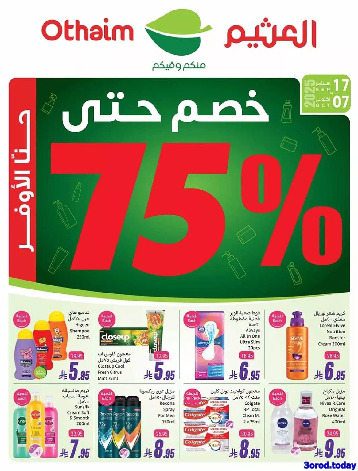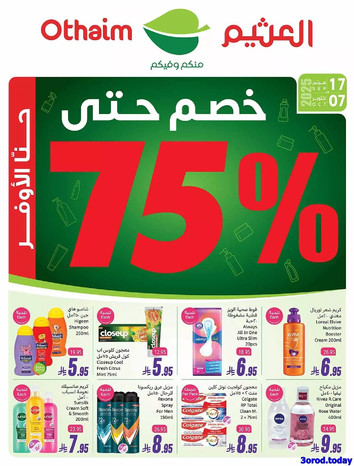 عروض العثيم مستمرة حتي الثلاثاء 7/10/2025 و تقدم مجموعة متنوعة من منتجات العناية الشخصية للأطفال والبالغين حيث تجد اختيارات مثل غسول اليدين وصابون الأطفال من ماركات شهيرة إضافة إلى بودرة الأطفال وكريمات الترطيب والشامبو والعناية بالجسم والشعر و تشمل أيضا منتجات العناية بالبشرة باسعار تنافسية