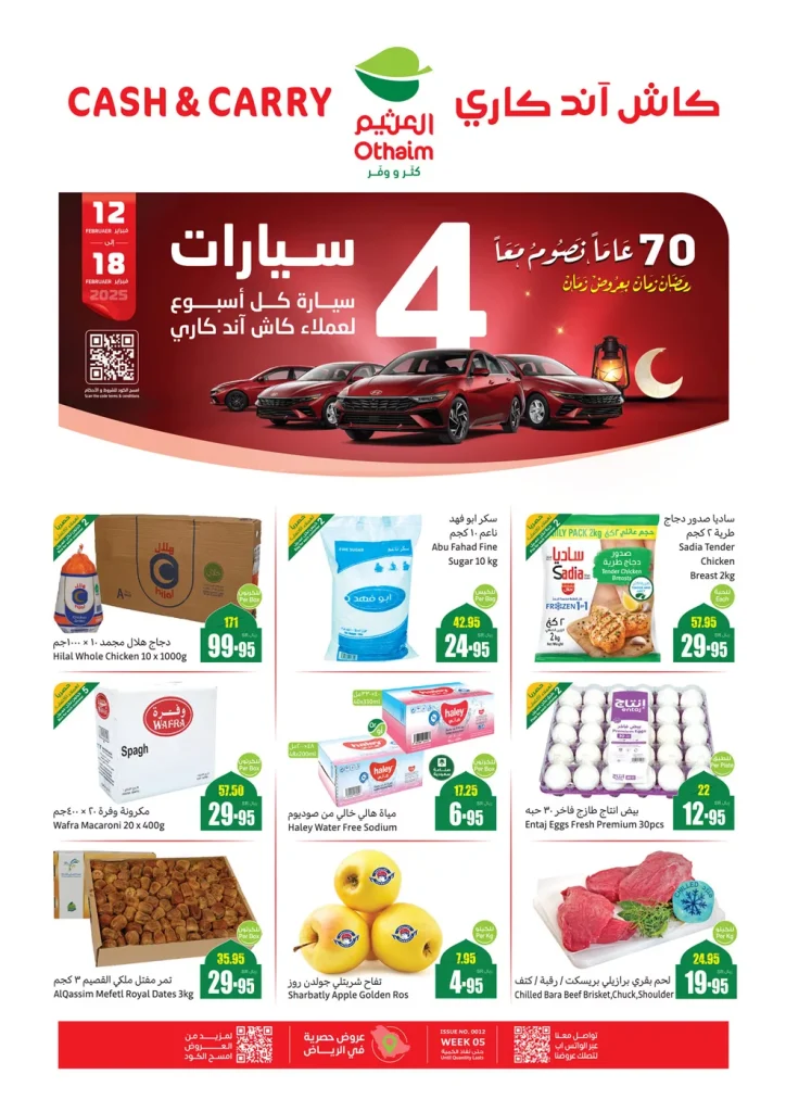 عروض العثيم حتي الثلاثاء 18 فبراير 2025 توفر خصومات هائلة على المنتجات الغذائية الأساسية حيث تشمل التخفيضات على الأرز و السكر و الدجاج واللحوم الطازجة مما يتيح للعائلات توفير احتياجاتها اليومية بأسعار تنافسية كما تشمل العروض تشكيلة واسعة من منتجات الألبان و الأجبان والمعلبات،