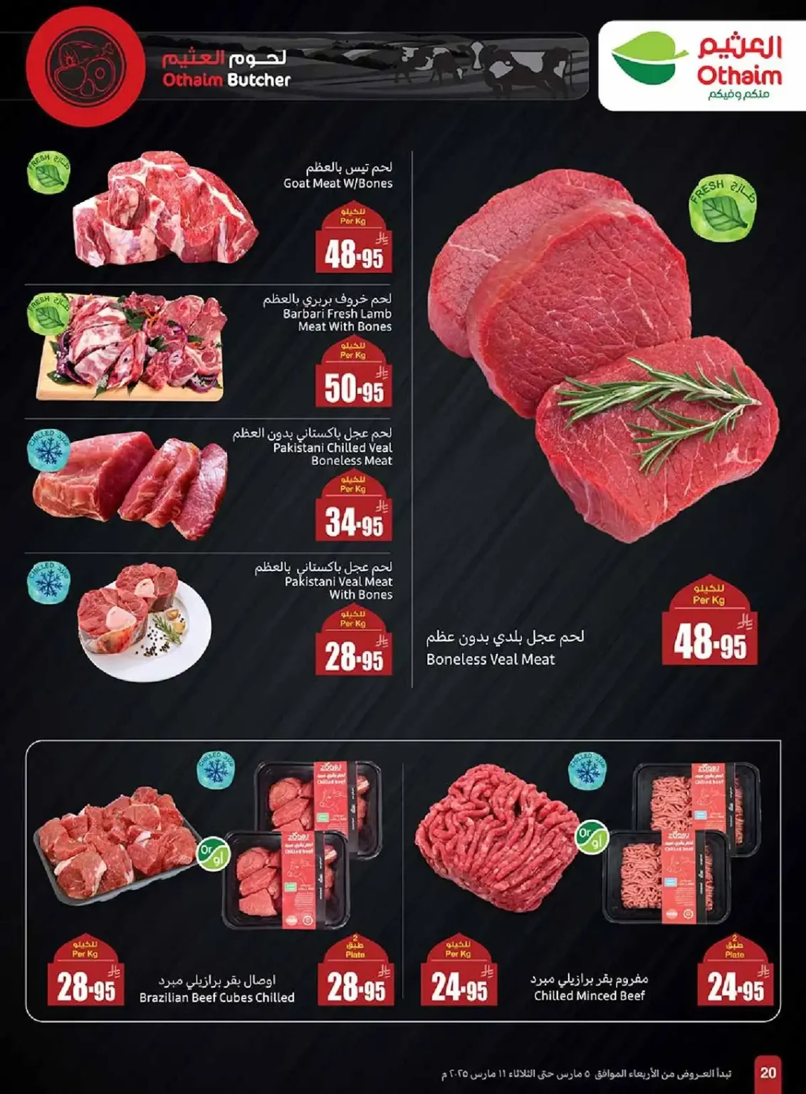 تقدم أسواق العثيم عروضا مذهلة على تشكيلة من اللحوم الطازجة بما في ذلك لحم التيس والخروف البربري عالي الجودة بالإضافة إلى لحوم العجل الطازجة المستوردة من باكستان والبرازيل بأسعار تنافسية و هذه العروض تمنحك الفرصة لشراء أفضل أنواع اللحوم الطازجة والمبردة المناسبة لتحضير أشهى الأطباق بكل سهولة