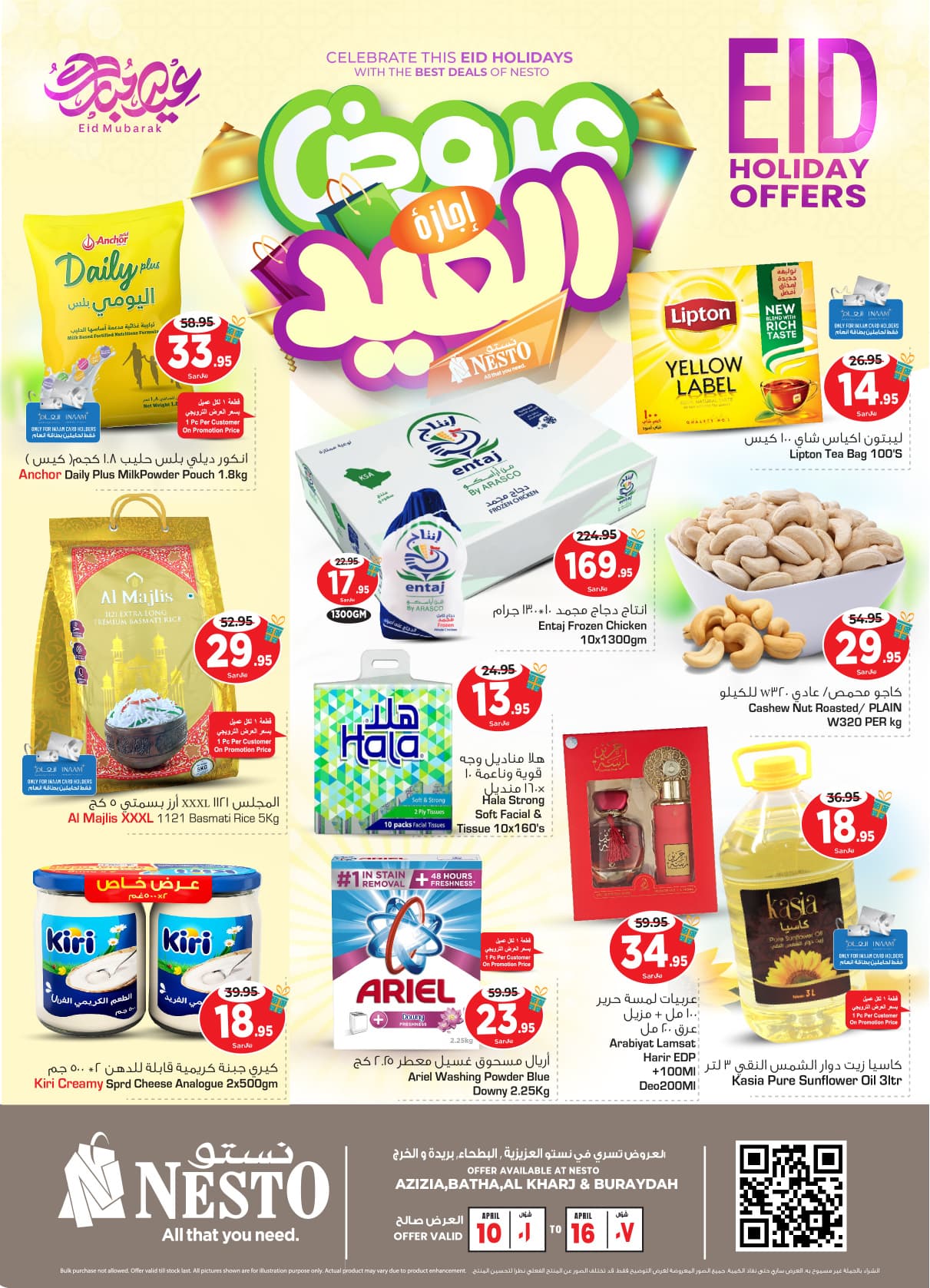 تحتوي عروض نستو الرياض علي : هايجين شامبو , شيبس شيتوس , بينت بتر اند كو , ريو ماري , تمر هندي , كريم هيمالايا , لبن الصافي , باجة مكسرات , ماء تواليت من , كعك أصابع حبة ,مبيض قهوة كروجر , فجل أحمر طازج , كعك أصابع زعتر 1 , ليمون , صابون امبريال , منظف متعدد , حلواني و طحان , باجة فول سوداني , (مانجو , فشار قودي علب ,