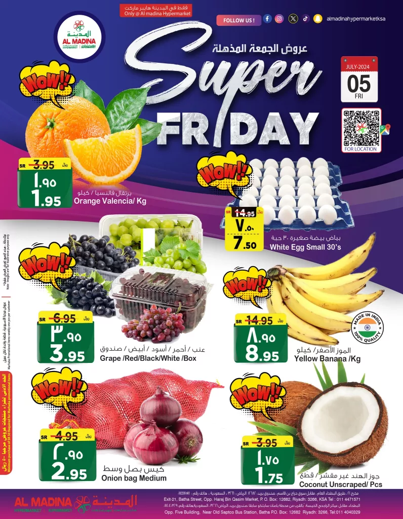 عروض المدينة هايبر ماركت الجمعة 5 يوليو 2024 تقدم لكم تخفيضات مذهلة على مجموعة متنوعة من المنتجات الغذائية والمنزلية. استمتعوا بخصومات كبيرة على الفواكه والخضروات الطازجة، بالإضافة إلى اللحوم والدواجن ذات الجودة العالية. تشمل العروض أيضاً تخفيضات على الأطعمة المجمدة والمعلبات ومنتجات الألبان.