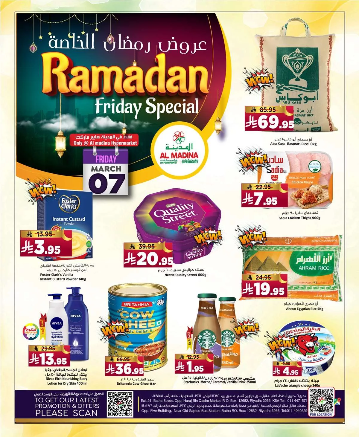 عروض المدينة هايبر ماركت تشمل أيضا تخفيضات استثنائية على مستلزمات المطبخ حيث يمكنك الحصول على طقم طهي جرانيت بثماني قطع أو مقلاة ووك بأسعار رائعة كما لم تنس العروض المنتجات الغذائية الأساسية مثل الأرز البسمتي والدجاج المجمد وزيت الطهي مما يجعلها مثالية للاستعداد لشهر رمضان المبارك.