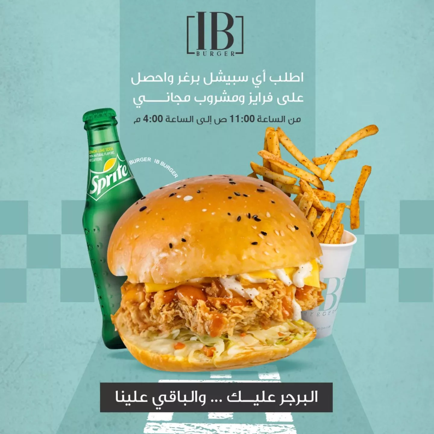 اطلب اي سبيشل برغر واحصل على فرايز ومشروب مجاني من الساعة 11 صباحا حتي 4 مساء