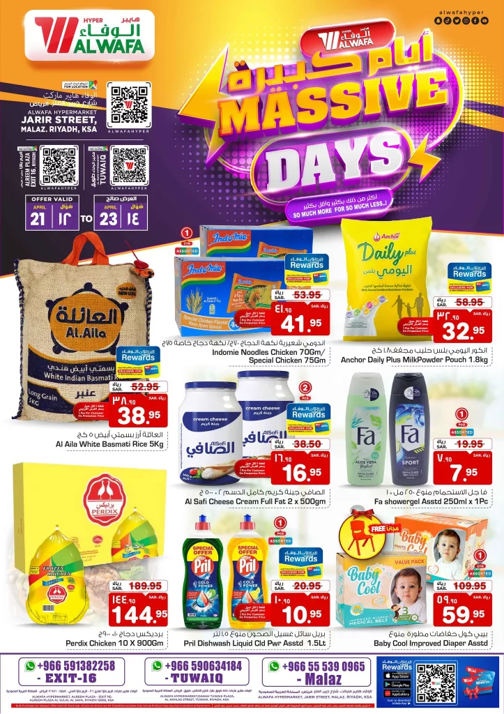 تحتوي عروض الوفاء هايبر ماركت علي : جون ويست رنجة , ريو ماري , باجة بابايا , لوز عادي , باريلا مكرونة , كريم نيفيا , فلفل احمر حار , زيت شعر دابر , بيرفيتو لازانيا , ريو ماري تونا ,لبن نادك طازج , لايف بوي غسول , ريو ماري , العلالي مربى , جل شعر لوريال , باذنجان , بايارا زبيب , كوراسون صغير , اندومي شعيرية , فرشلي مكرونة ,