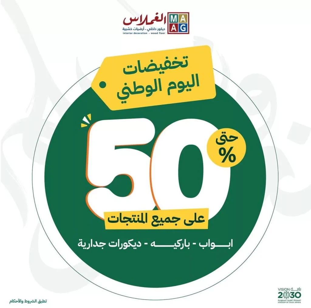 تعد عروض الغملاس في اليوم الوطني السعودي 94 فرصة ذهبية لتحديث ديكور منزلك والاستفادة من التخفيضات الكبيرة على مجموعة واسعة من المنتجات. لا تفوت هذه الفرصة لتحصل على أجود أنواع الأبواب، وأجمل الأرضيات الباركيه،