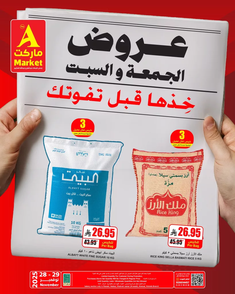 مع اقتراب نهاية شهر نوفمبر، يترقب الكثير من الأسر في الرياض الفرص المميزة للتوفير في مشترياتهم. ويسعدنا أن نقدم لكم اليوم تفاصيل عروض ايه ماركت الرياض الرائعة التي تنطلق يوم الجمعة 28 نوفمبر 2025، وتستمر ليومين فقط. هذه العروض تغطي مجموعة واسعة من المنتجات الأساسية والاستهلاكية، مما يجعلها فرصة لا تعوض لتخزين احتياجات المنزل بأسعار تنافسية للغاية. سنستعرض في هذا المقال أبرز ما تقدمه ايه ماركت من تخفيضات وعروض خاصة، مع التركيز على المنتجات التي تشملها هذه الحملة الترويجية.