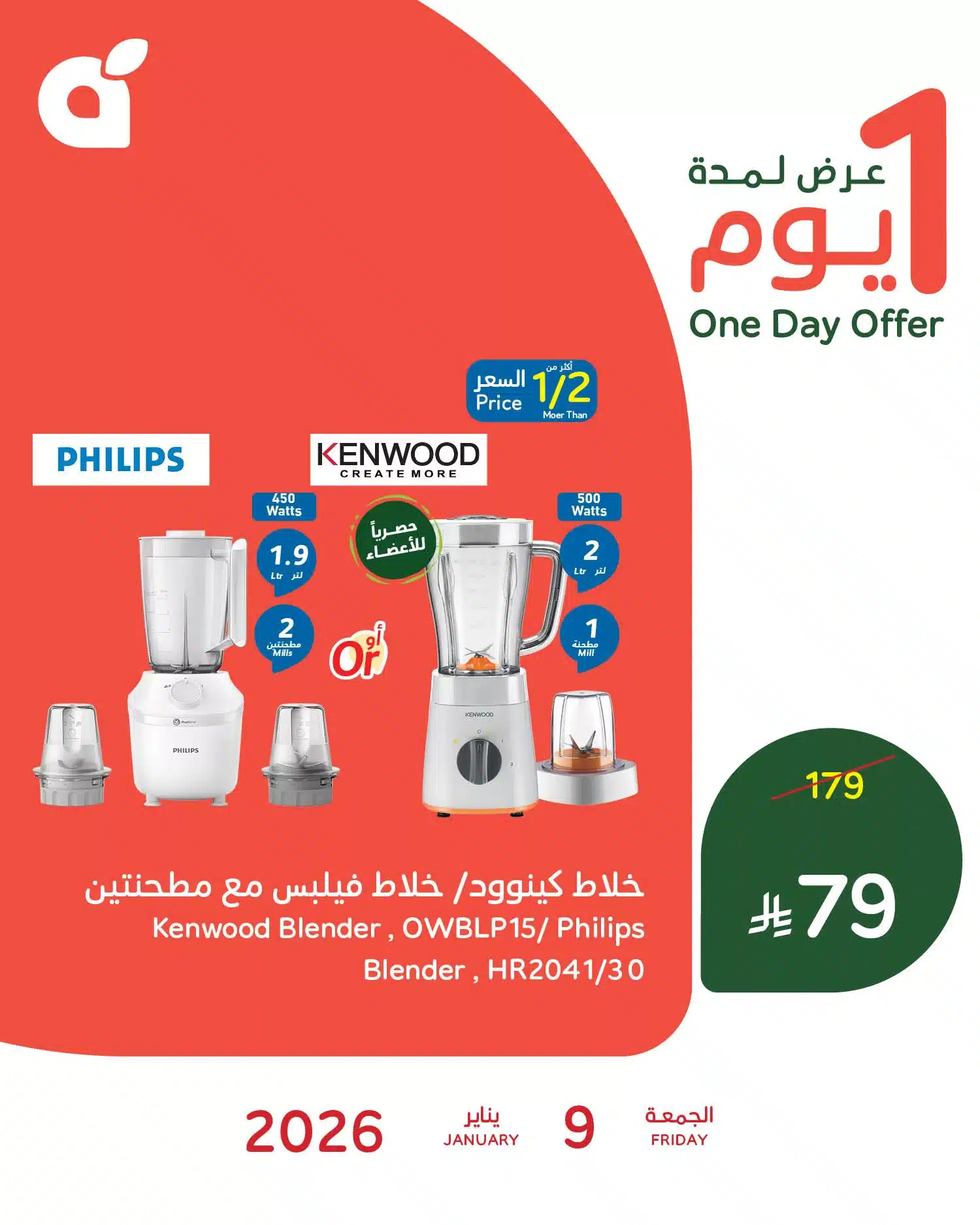 من بين أبرز عروض بنده اليوم، يبرز عرض الخلاطات الكهربائية من ماركات عالمية مرموقة مثل كينوود وفيلبس. يمكنك الآن الحصول على خلاط كينوود أو فيليبس بسعر مغري يبلغ 79 ريال سعودي فقط! هذا العرض يمثل توفيرًا يزيد عن نصف السعر الأصلي، مما يجعله فرصة لا تعوض لتجديد مطبخك.