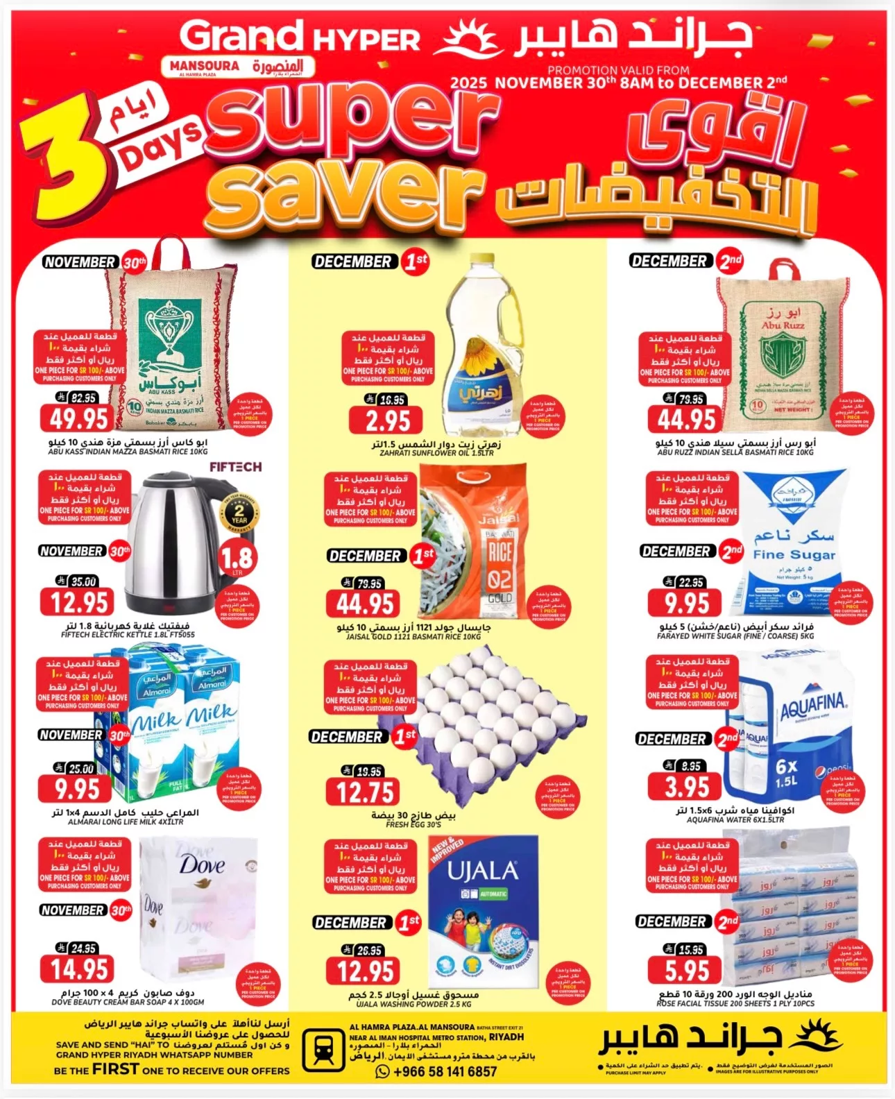 تعتبر جراند هايبر من أبرز الوجهات التسوقية في الرياض، والتي يحرص الكثيرون على زيارتها للاستفادة من العروض المميزة والأسعار التنافسية. ولهذا، نقدم لكم اليوم نظرة شاملة على عروض جراند هايبر الرياض التي تبدأ يوم الأحد 30 نوفمبر 2025 وتنتهي يوم الثلاثاء 2 ديسمبر 2025 الموافق 11 جماد الآخر 1447هـ. هذه العروض تشمل مجموعة واسعة من المنتجات الأساسية والاستهلاكية، والتي تهدف إلى تلبية احتياجات جميع أفراد الأسرة بأفضل الأسعار. سواء كنت تبحث عن توفير في الميزانية، أو عن الحصول على منتجات ذات جودة عالية، فإن عروض جراند هايبر الرياض هي الحل الأمثل.