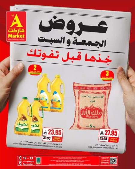 عروض جراند هايبر الرياض الويكند تتضمن تخفيضات على السلع الأساسية كالأرز والمعكرونة وزيت الطهي مع عروض على المكسرات والفواكه المجففة كما تتوفر خصومات على الأجهزة المنزلية الصغيرة كالمحمصات وآلات صنع العصير