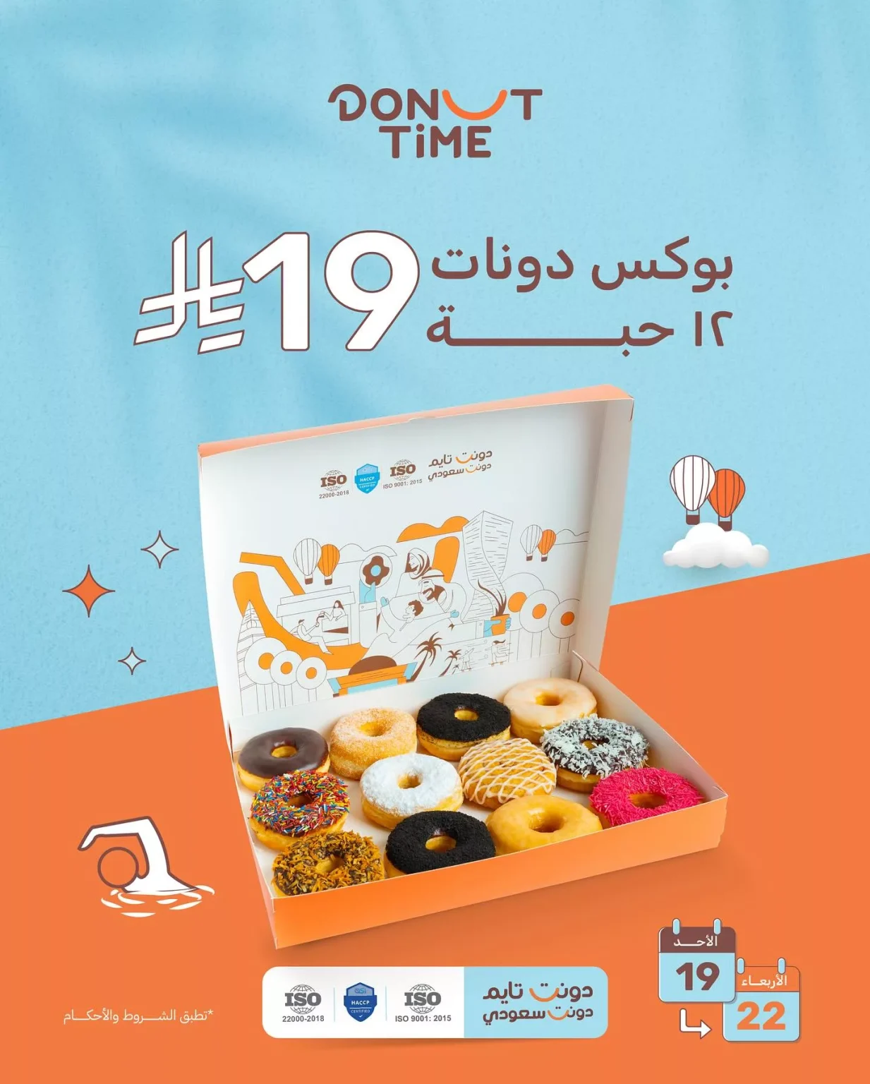• سعر بوكس دونات 12 حبة بـ 19 ريال سعودي