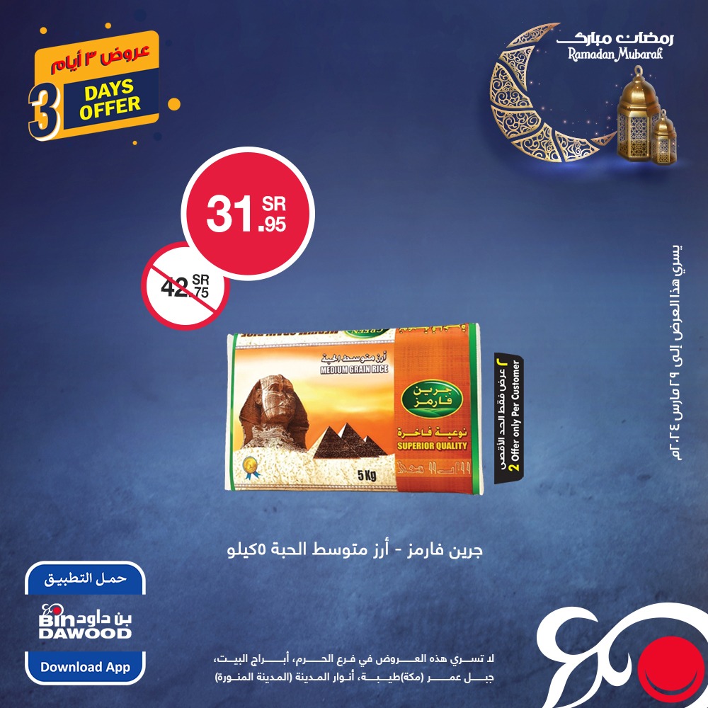 - العرض: جربوا الأرز المصري بجودة عالية بسعر 31.95 ريال بدلاً من 42.75 ريال.
