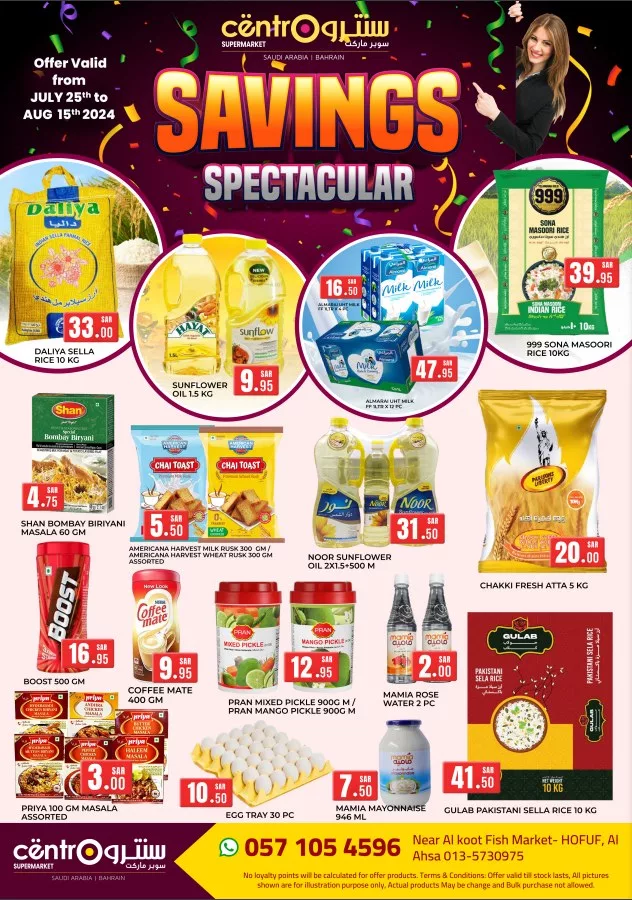 تواصل عروض سنترو الحفوف تقديم أفضل العروض على مجموعة متنوعة من المنتجات المنزلية الأساسية، بما في ذلك التوابل والصلصات، مثل شان بهارات برياني وخل التفاح براغ، بالإضافة إلى الوجبات الخفيفة والمعلبات من علامات تجارية معروفة.