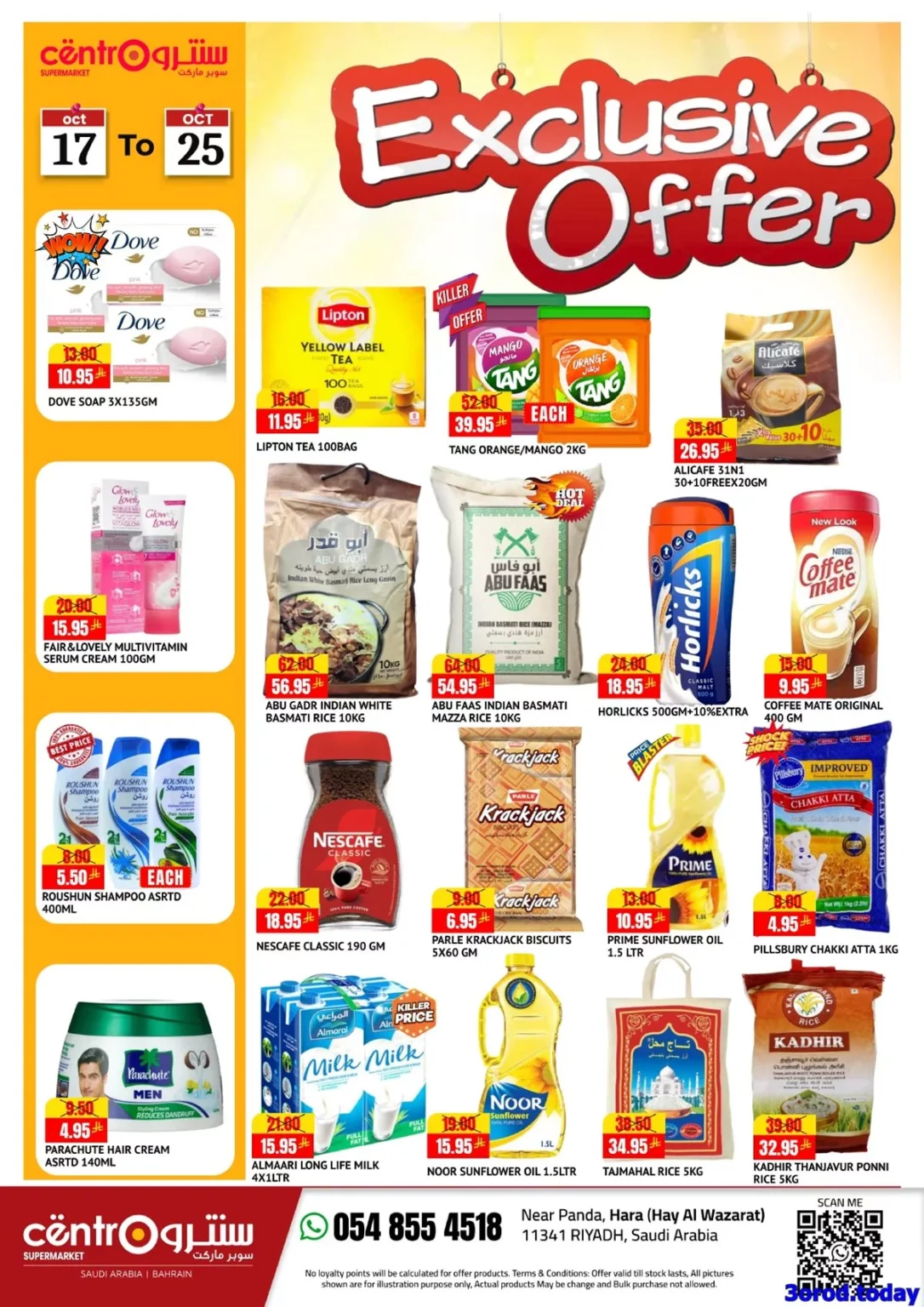 عروض سنترو الرياض حتي السبت 3 جماد الاول 1447هـ يقدم منتجات متنوعة منها الشامبو وكريمات الشعر إلى أنواع القهوة والشاي وحليب طويل الأجل بالإضافة إلى أنواع البسكويت والزيوت النباتية والأرز الفاخر باقل الاسعار تابعونا علي موقعكم عروض توداي لمعرفة كل جديد عن عروض السعودية .