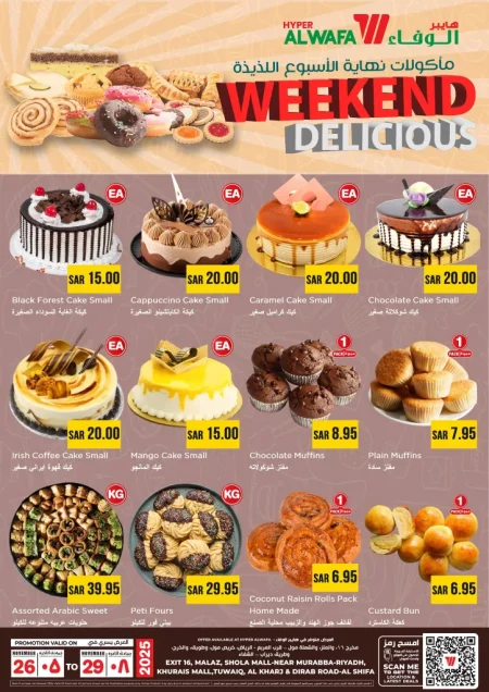 - المخبوزات والحلويات: استمتع بتشكيلة لذيذة من المخبوزات الطازجة والحلويات الشهية بأسعار مميزة.