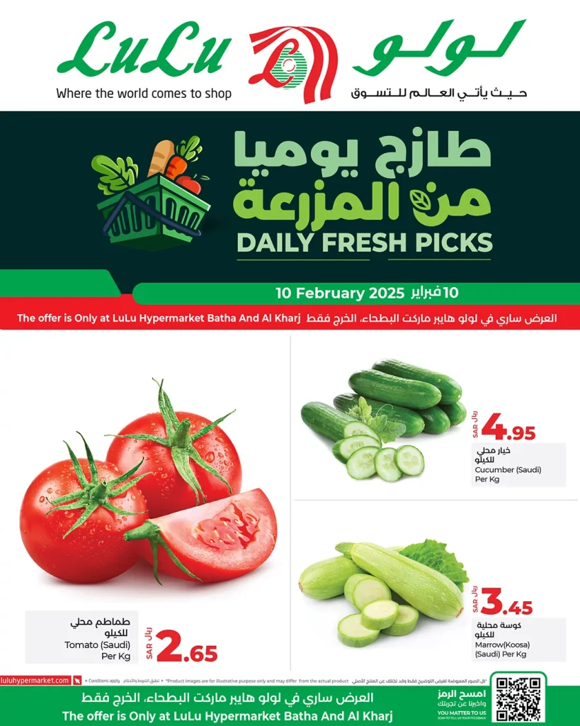 تقدم عروض لولو الرياض الاثنين 10 فبراير 2025 مجموعة مميزة من المنتجات الطازجة بأسعار تنافسية لتلبية احتياجات المتسوقين في السعودية و تتنوع العروض بين الخضروات الأساسية مثل البطاطس والطماطم والخيار والتي تعد من المكونات الأساسية لكل منزل