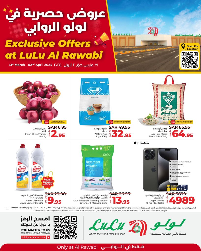تحتوي عروض لولو السعودية فرع الروابي اليوم علي : كاسترد فوستر , ساري عسل الغابة , كوراسون صغير , ماجي إكسيلانس , كريم بالمرز , حلواني و طحان , وايت سوان أرز , تمر عجوة , زيت للأطفال من , جونسون كولونيا ,عنب ابيض بدون , كارفور حلاوة , زين لوز أنصاف 400 , شامبو دوف , بصل احمر – كيس , بلسم هيربال , جهازغسيل اليدين , بيب زبدة فول , لبن نجدية طازج , صبغة غارنييه ,