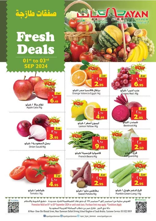 تسري هذا العروض من 01 سبتمبر 2024 إلى 03 سبتمبر 2024. لا تفوتوا هذه الفرصة الرائعة لتوفير النقود والاستفادة من المنتجات الطازجة بأسعار مخفضة.
