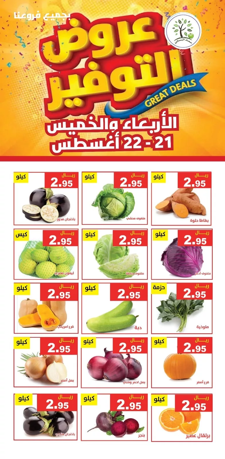 عروض مؤسسة حصاد البساتين الاربعاء 21-8-2024 تقدم لكم خصومات مميزة على مجموعة كبيرة من الخضروات والفواكه الطازجة، وذلك لتلبية كافة احتياجاتكم بأسعار تنافسية وجودة عالية. تشكيلة واسعة من المنتجات المحلية والمستوردة متاحة لكم بأسعار تبدأ من 2.95 ريال فقط للكيلو، مما يجعل التسوق مع حصاد البساتين تجربة فريدة