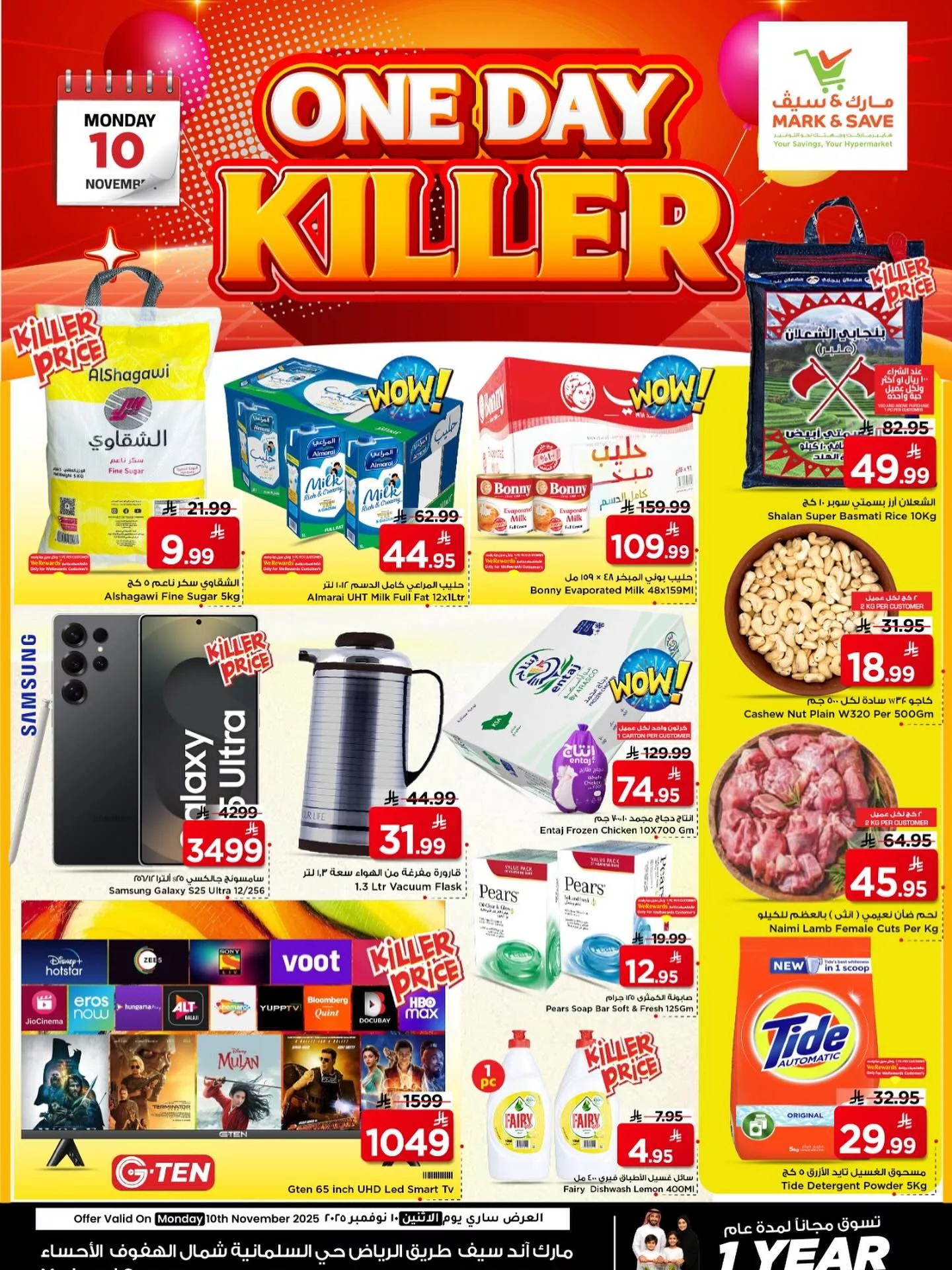 نقدم لكم عروض مارك اند سيف الاحساء بتاريخ الاثنين 19 جماد الاول 1447هـ و بتضم السكر والأرز والحليب المبخر بالإضافة إلى المكسرات والدواجن المجمدة واللحوم الطازجة و يشمل الأجهزة المنزلية مثل التليفزيون الذكي وأدوات المطبخ باقل الاسعار و العرض متاح اليوم فقط تابعونا علي موقعكم عروض توداي ليصلكم كل جديد .