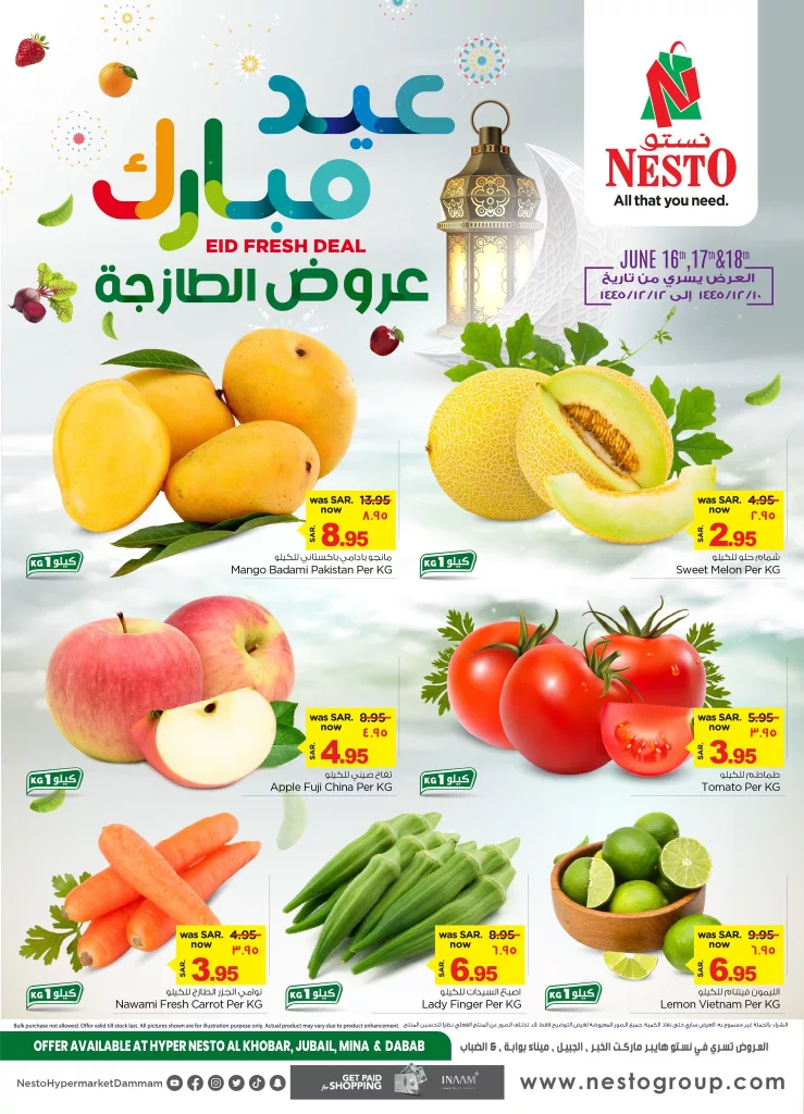 يسري العرض من 16 يونيو إلى 18 يونيو 2024. اغتنموا الفرصة للحصول على أفضل المنتجات بأقل الأسعار من نستو هايبر ماركت.