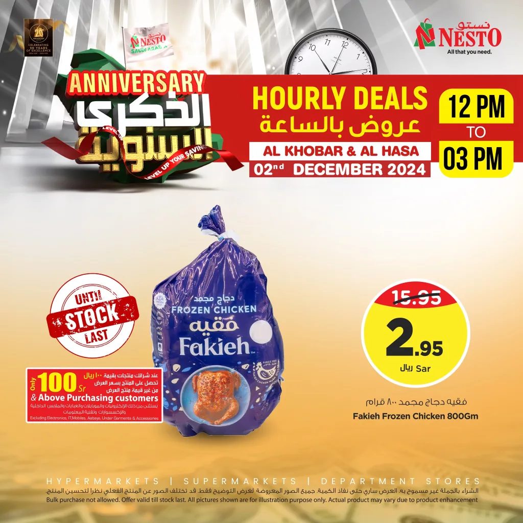 يحتفل نستو الدمام بعروض حصرية الاثنين 2 ديسمبر 2024 حيث يقدم خصومات مميزة على مجموعة واسعة من المنتجات العرض يركز على توفير خيارات متنوعة تتناسب مع احتياجات جميع أفراد الأسرة بدءا من الأدوات المنزلية وحتى المواد الغذائية واللحوم المجمدة لا تفوت فرصة الاستفادة من هذه التخفيضات الضخمة