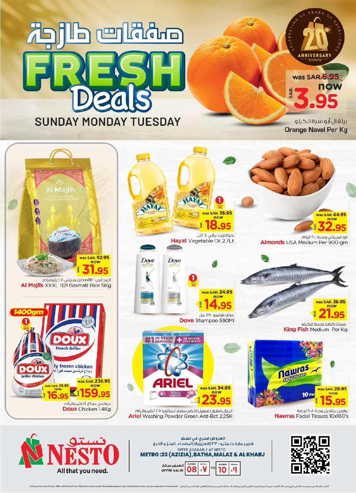 عروض نستو الرياض الاحد 8-12-2024 تقدم تشكيلة واسعة من المنتجات الطازجة والمجمدة بتخفيضات مذهلة تشمل الفواكه والخضروات مثل التفاح والكيوي والبروكلي بجودة عالية وبأسعار تنافسية بالإضافة إلى اللحوم الطازجة المتنوعة مثل لحم الغنم النعيمي المحلي واللحم العجل الباكستاني بأسعار مميزة.